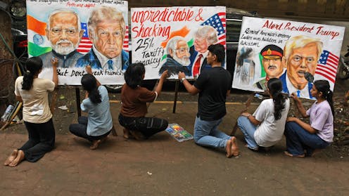 Students from an art school in Mumbai, India, created posters in response to Trump’s latest tariff announcement. SOPA Images/Getty Last
